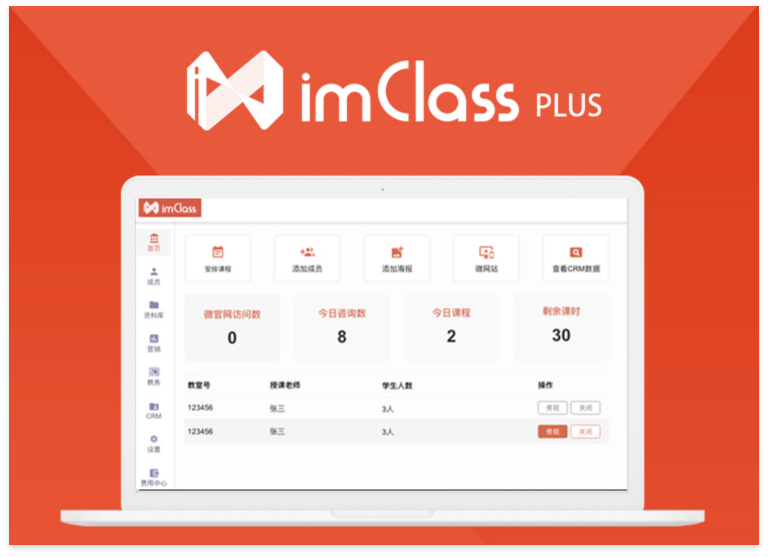ImClass Plus為(wèi)培訓機(jī)構提供:市(shì)場(chǎng)推廣、營銷獲客、線索管理(lǐ)、在線教學、口碑傳播、學員(yuán)管理(lǐ)、教務運營、數(→shù)據分(fēn)析的(de)閉環SaaS系統查看(kàn)詳情